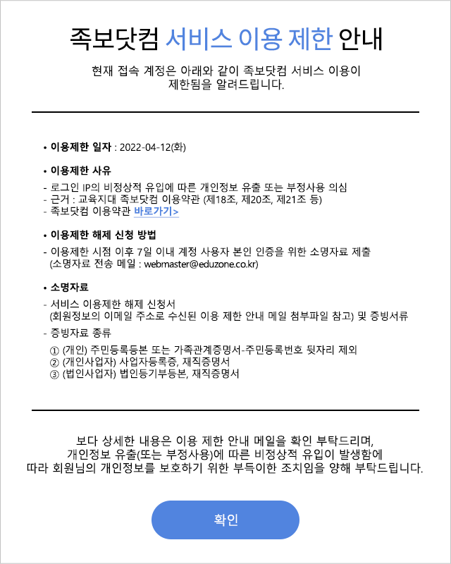 ÇØ´ç ÆË¾÷ÀÌ ³ëÃâµÈ ÀÌÈĺÎÅÍ º» °èÁ¤Àº Á·º¸´åÄÄ ¼­ºñ½º ÀÌ¿ëÀÌ ºÒ°¡ÇÕ´Ï´Ù.